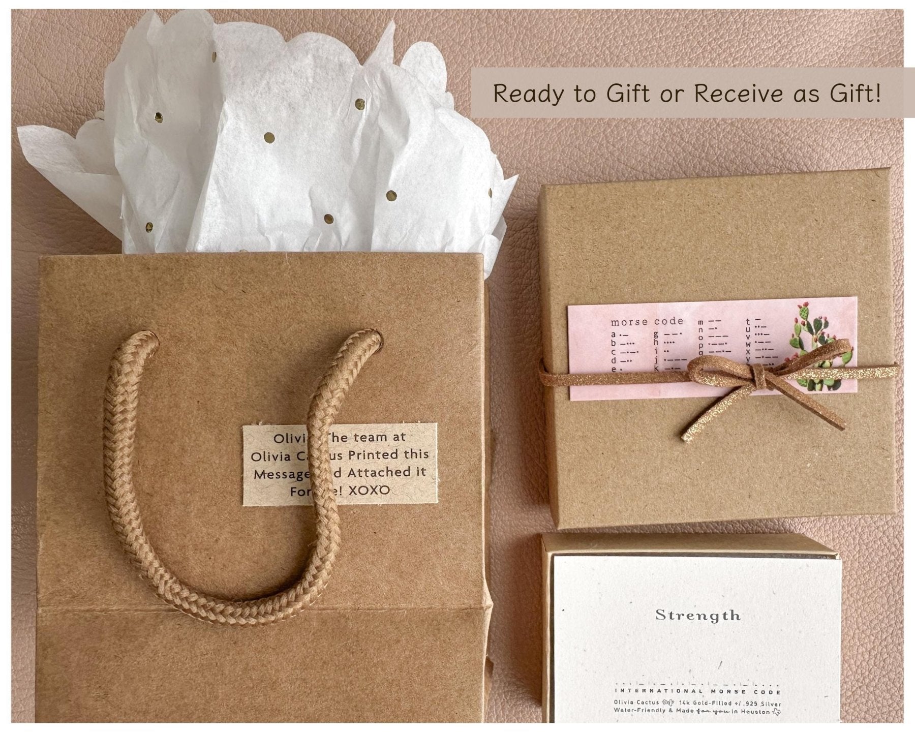 Delicate yet resilient, this sterling silver chain is adorned with shimmering silver beads and tiny spacer hoops, making Morse code decoding a delight. Every element, including the clasps, is crafted from sterling silver. Select from our curated words or opt for a custom choice to spell out any name or message on a personalized card (note: numbers count as two letters per digit). Each necklace arrives in a charming gift box with a bow, ready for gifting, with an optional beautiful gift wrap at checkout. Don’t forget to add a personalized gift message! Explore more designs, including sterling, gold, and rose gold options. Perfect for a personalized touch!