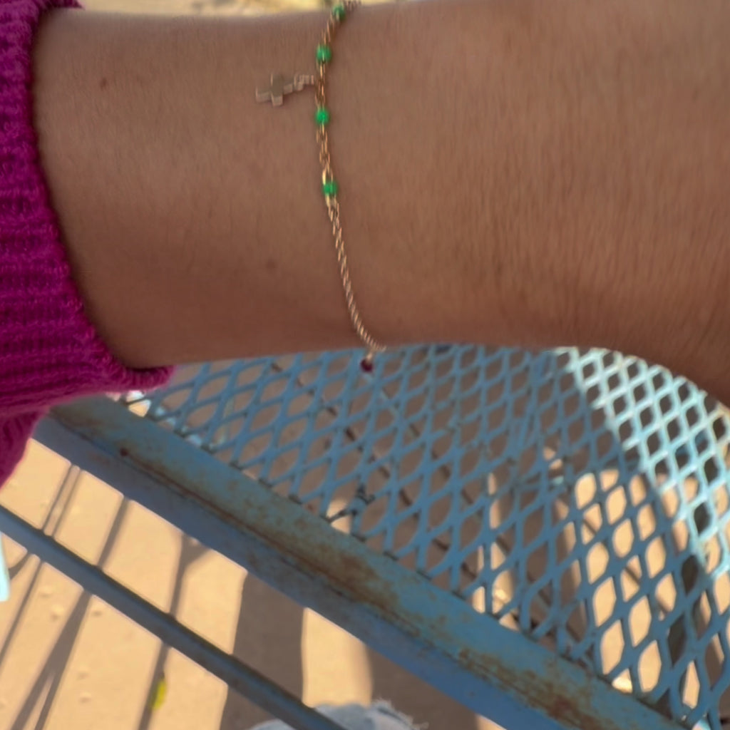 Gold + Crystals Morse Code Bracelet + Cross Charm