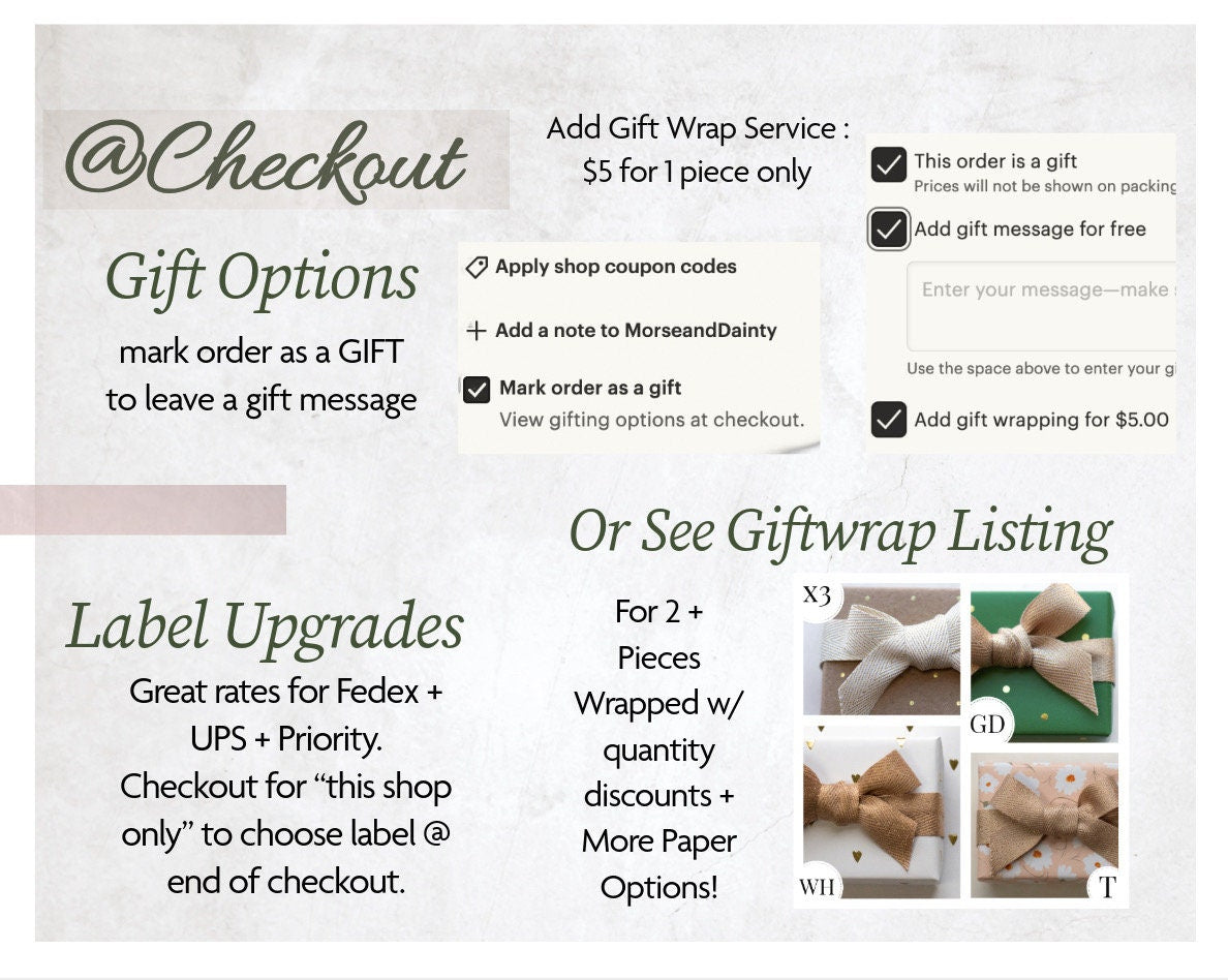 For other sizes please leave us a note at checkout with your preferred size option as follows: