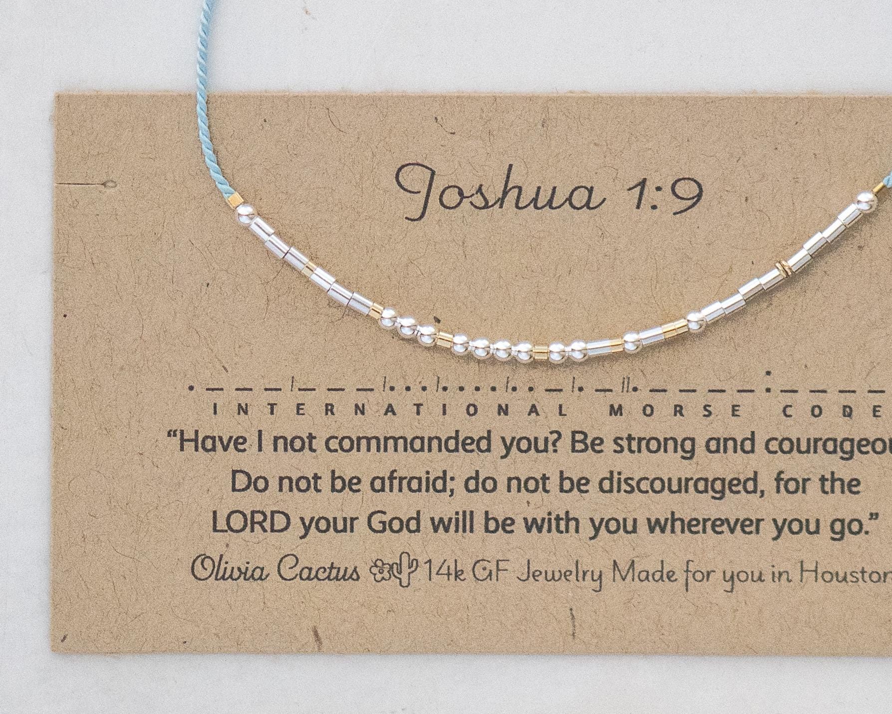 Quiet luxury faith jewelry designed for everyday wear. This minimalist Morse code bracelet lets you choose Joshua 1:9 or any custom verse, crafted with waterproof 925 sterling silver and an adjustable cord for a perfect fit.