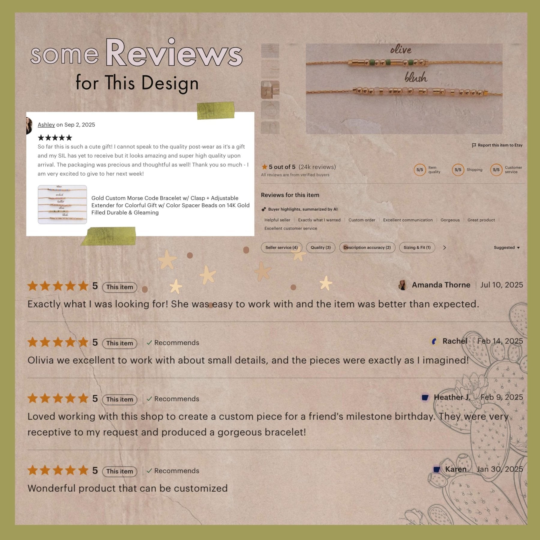 Stunning Gleam on 14K Gold Filled Durable Chain + Adjustable for The Perfect Fit. Spell Strength or Any Custom Word in Morse Code and We will print and match the word with a personalized card all within a box with a bow ready to gift or receive directly as a gift.