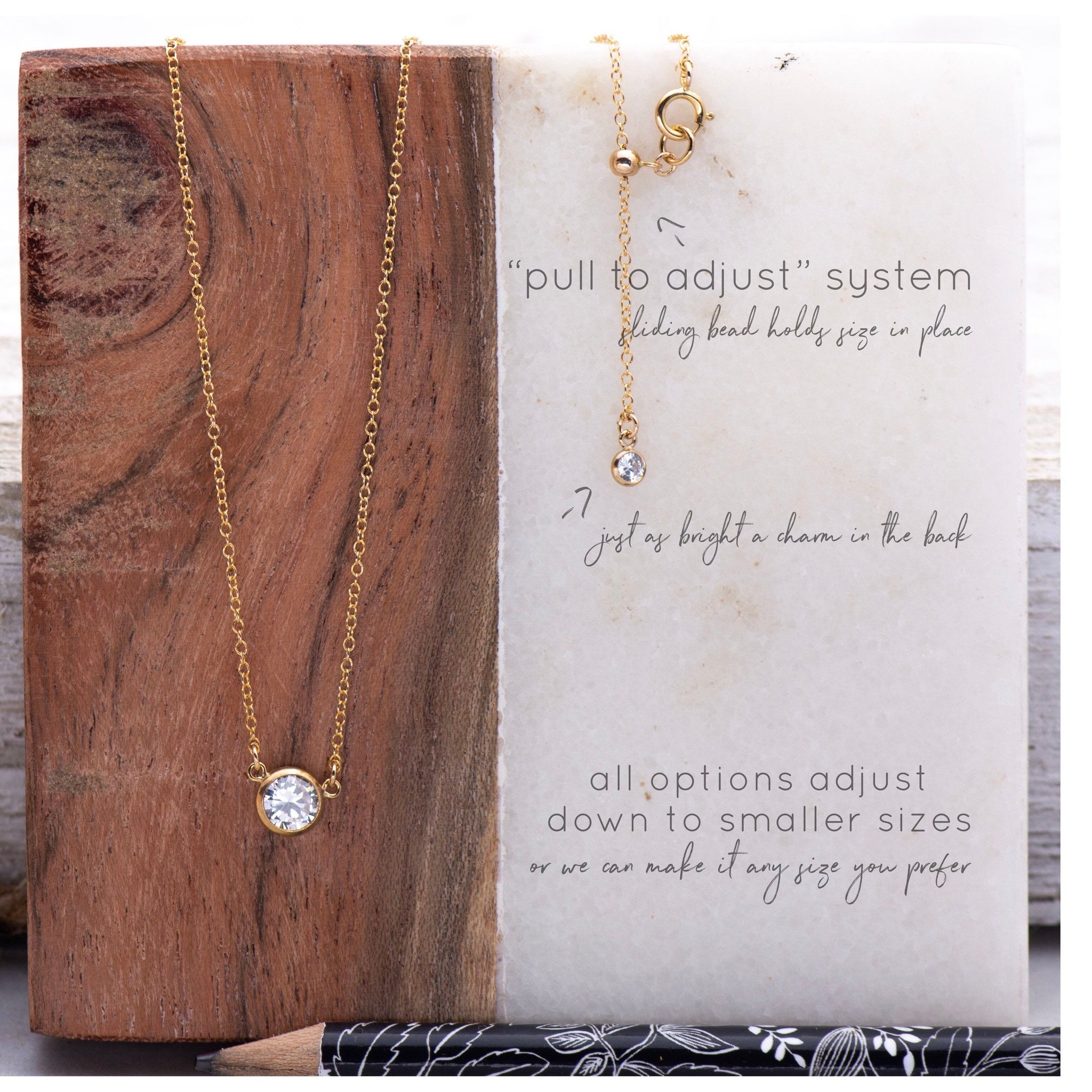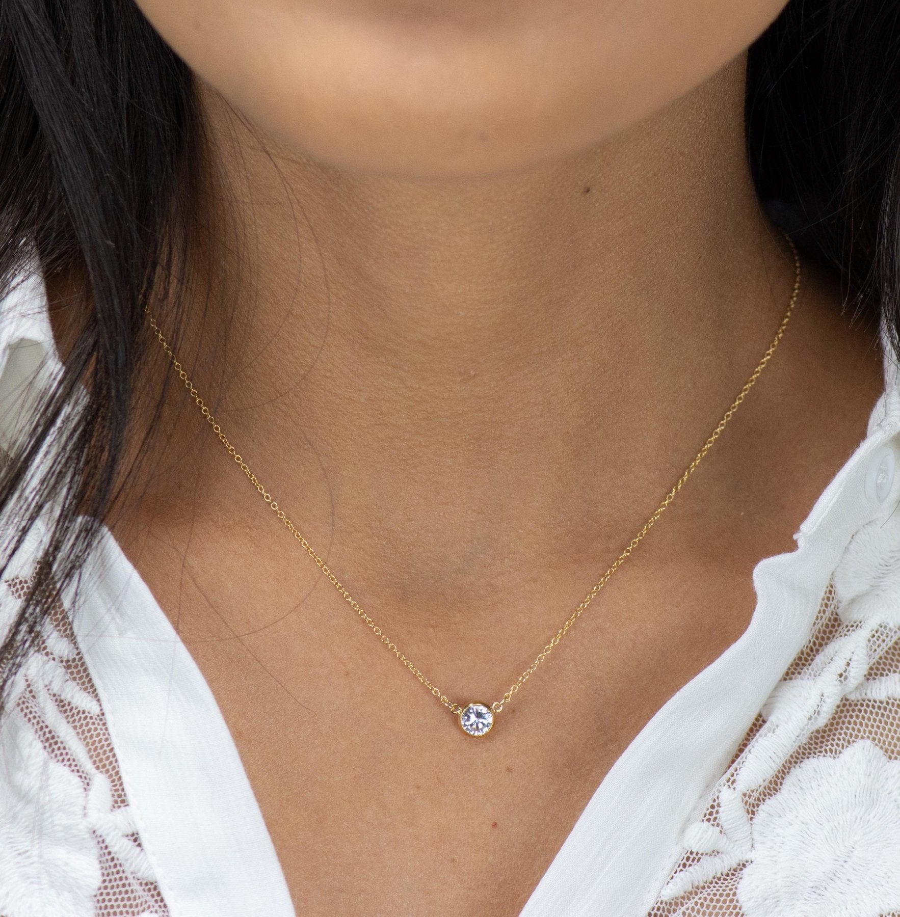 A dainty diamond cut CZ on a fine 14k gold filled chain, made to catch light softly for a subtle everyday shimmer. Known as the Nasreen Necklace, this piece has become a customer favorite with over 1,700 reviews for its clean, minimal look and comfortable daily wear. It layers beautifully, feels lightweight on the skin, and brings a soft luminosity that suits any style.