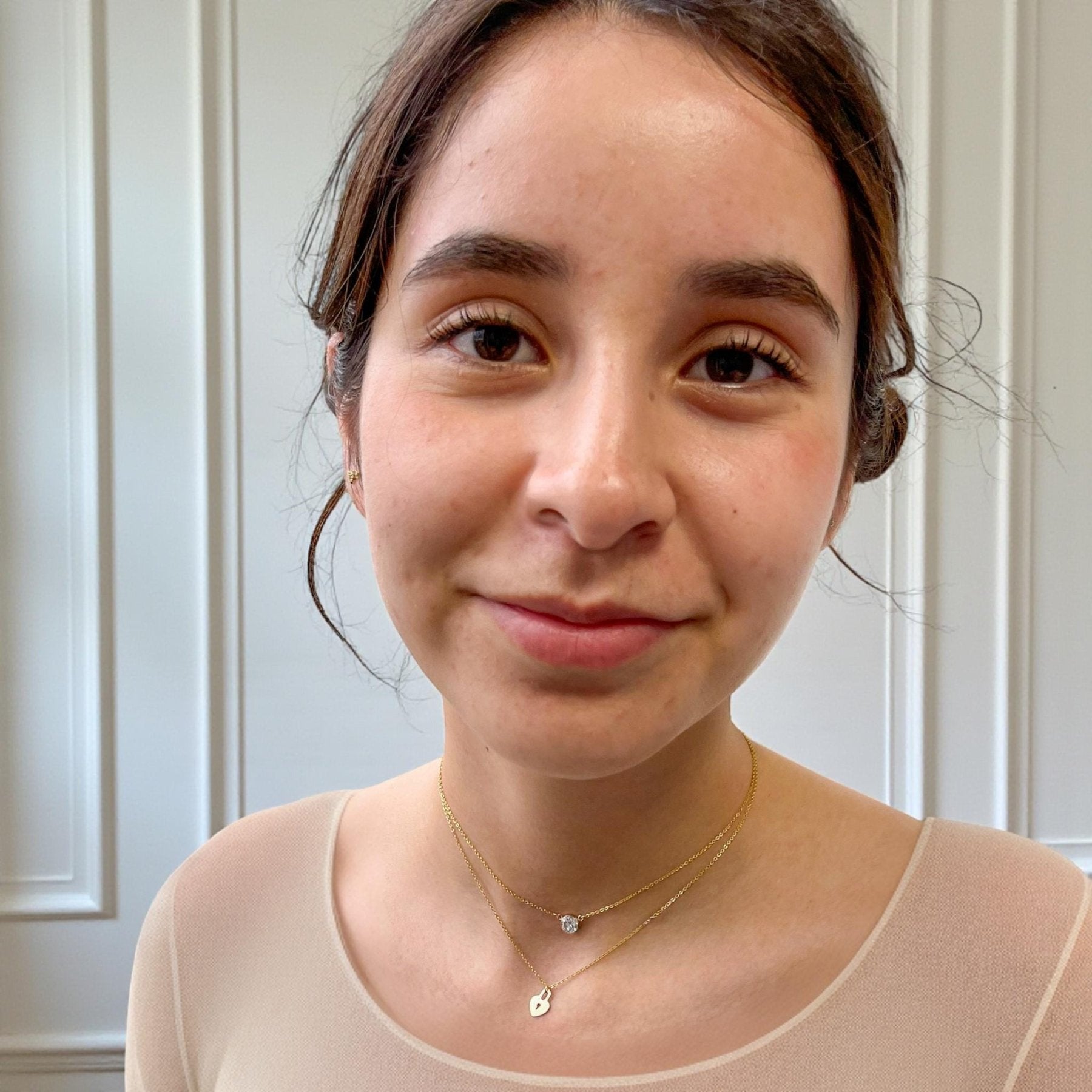 Simple and luminous on its own. Beautiful layered with your favorite gold chains or paired with the Nasreen Bracelet for a matching everyday set. A piece that feels delicate but not fragile, polished but never flashy.